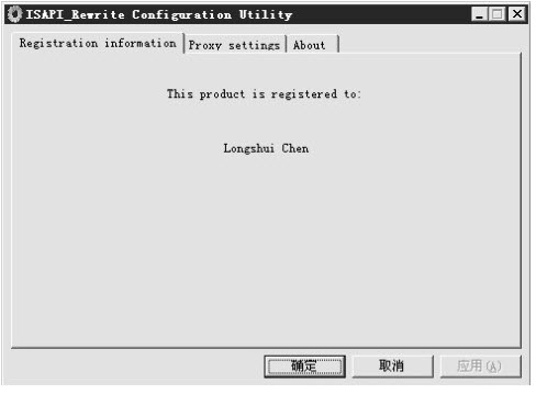 2、安装完成后打开ISAPI_Rewrite目录中ISRWConfig.exe,输入SN中注册序列号。