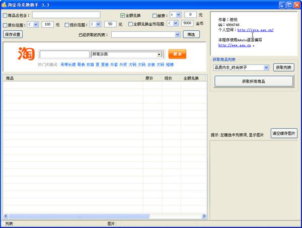 淘金币兑换助手 v3.3绿色版 淘金币兑换助手帮助我们了解兑换规则,淘宝金币兑换规则又变了,现在全额兑换的金币数量不是按现价*100的算法了,而且有些店还要是店铺vip才能用金币兑换(只有进入购买页面才知道),所以有些搜索出来能全额兑换的商品,不一定就真的能全额兑换(因为很多时候,我们不是该店的vip)