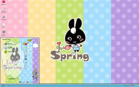 这款主题颜色非常夺目,背景由五彩粉色组成,中间是一个可爱的米菲兔拿着水壶浇灌着春天的花朵,喜欢这款米菲兔主题的朋友们快来免费下载使用吧