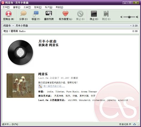 Last.fm是世界上最大的社交音乐平台。隶属于美国哥伦比亚广播公司(CBS),音乐库里有超过1亿首歌曲曲目(其中300多万首可以收听)和超过1000万的歌手。每个月,全世界250个国家,2000万人在这里寻找、收听、谈论自己喜欢的音乐。这个数字还在不断增长。
