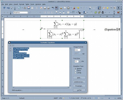 TexMaths 是为 LibreOffice 设计的一个 LaTeX 插件。LaTeX 算式可以被当做图片(SVG 或者 PNG 格式)被插入,并且 LaTeX 代码是被保存到 image 属性中,以用于将来的编辑。 TexMaths是一个LibreOffice扩展,允许您输入和编辑LaTeX方程直接进入LibreOffice的文件,当然TexMaths 是LibreOffice的扩展。
