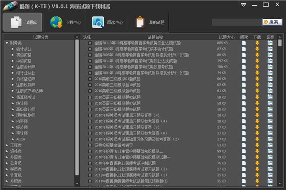酷题(K-Tii)海量试题下载利器是互联网上首款海量试题下载和阅读试题的免费软件。