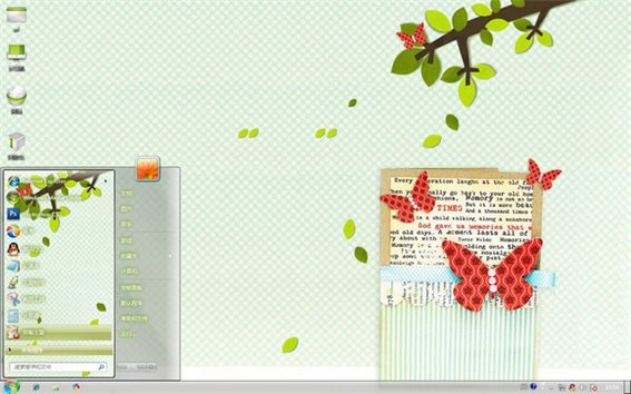 蝴蝶要通过破茧才能够成蝶,也需要在春天这个大环境中才能够展翅飞舞,这款桌面主题的背景就是几只红色斑点蝴蝶在各处飞舞,同时还有嫩绿的树叶在枝头冒出,预示着春天已经彻底到来了!