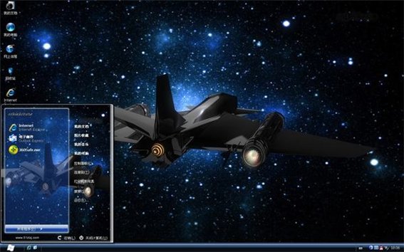 特别倾情打造的,一架纯黑色的战机翱翔在蓝色星空中,充满着神秘和能量,如果您的系统是win7的,也不用遗憾