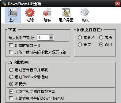同时,DownThemAll支持断点续传,可以随时暂停/恢复下载;还支持多线程下载,大大提高下载速度,理想情况下能够加速400%哦~~