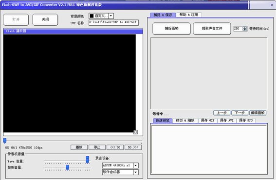 Flash-SWF to AVI-GIF Converter 可以将 flash/SWF 文件转换成为 GIF、AVI、MP3文件的一款实用软件, 功能强大,操作简单,附汉化补丁附注册码。