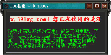 联盟挂霸欢迎您的使用!您正在使用的是测试版! 游戏中按N键启动瞬移,M键关闭瞬移!必须先登录游戏再开启辅助 否则无效
