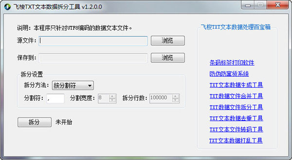 3、TXT文本数据拆分工具支持多种拆分方式:分隔符、固定宽度、行拆分。
