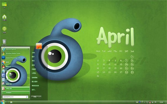 属于春天的四月也是绿色的,但是这个时候的绿已不是嫩绿了,而是绿得春意盎然,这款win7主题就很好的体现了春意,一只大大的眼睛望着你,还有四月桌面日历,提醒着你每天的日程,是不是很人性化呢?