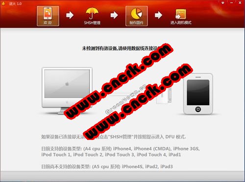 逆火 第一款全中文的ios刷机必备软件,全面兼容ifaith, redsn0w, cydia, tiny umbrella,itools的shsh备份信息,直接用于制作固件!全中文界面,小白果粉轻松刷机