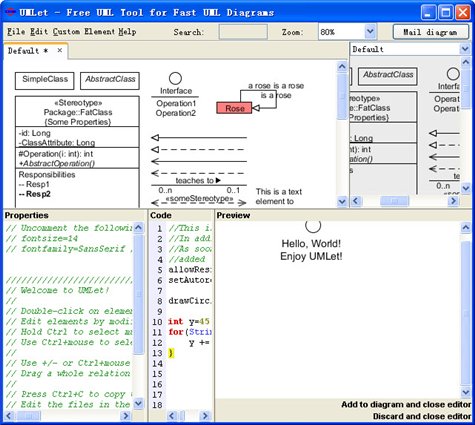 轻量级UML建模工具(UMLet) V11.4 绿色版 UMLet是一个开放源代码轻量级UML建模工具。UMLet能够让你快速建模,画UML图快,生产纯文本序列和活动图,并且能够导出各种格式SVG, JPG, PDF and LaTeX-friendly EPS。