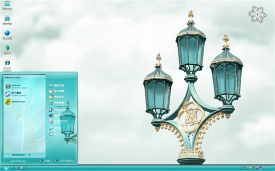 说到法国,你首先会想到什么呢?浪漫吗?奢华吗?古典吗?这些都是吧,在这款法国印象xp主题的桌面背景中,一款古老的路灯映入眼帘,复古的蓝透露着优雅,电脑桌面的右上角还有着预示着天气变化的图标哦