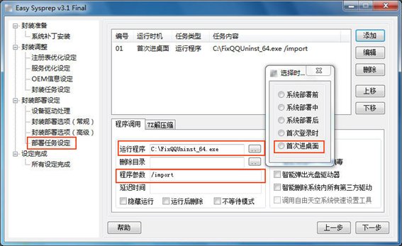 5.示例顺序:QQ安装后(/export) > 系统封装前 > 系统封装后 > 系统部署期间 > 首次进入桌面(/import)
