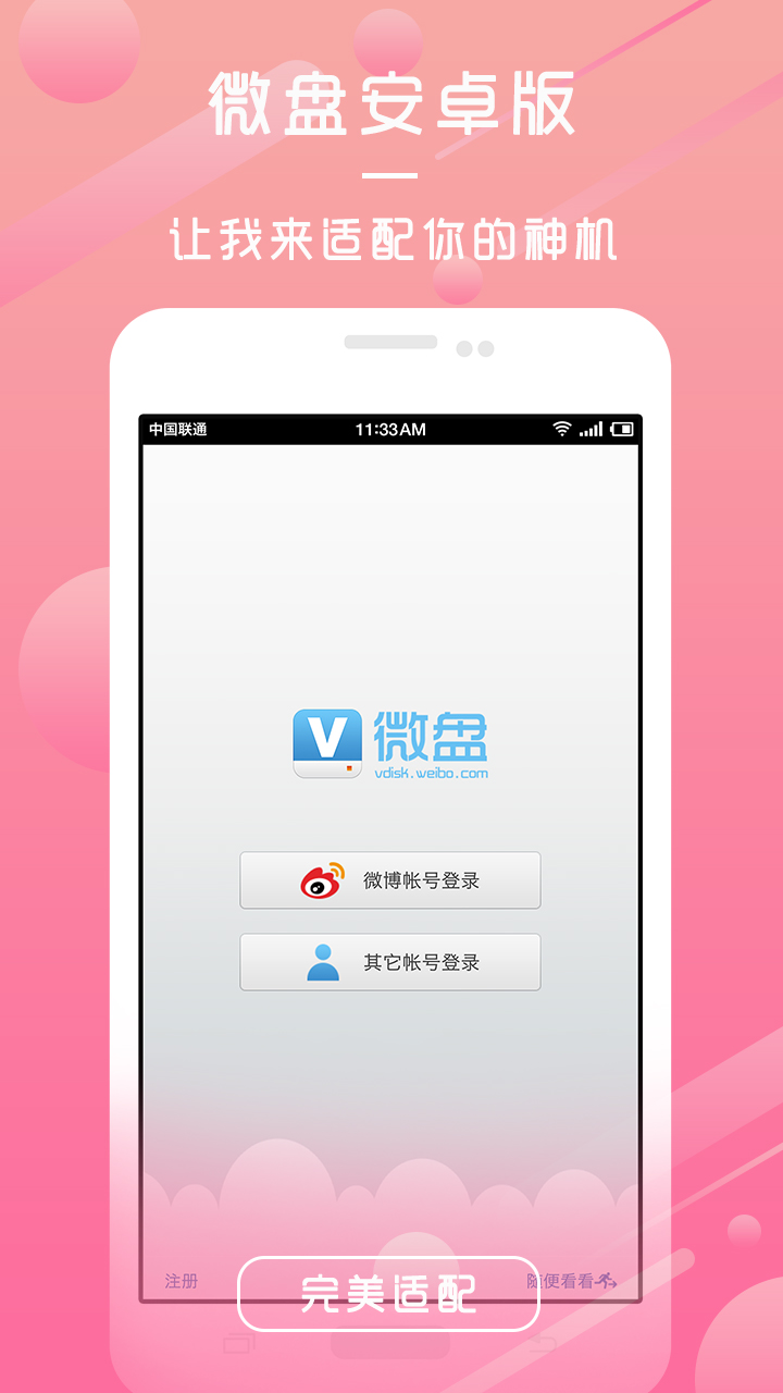 方法二:在您的手机上访问AndroidMarket并搜索"微盘"点击安装。