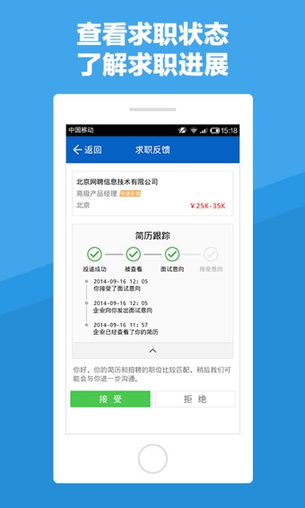 实时接收企业通知:怕错过人事来信?想知道谁看过您的简历?智联招聘第一时间告诉您;