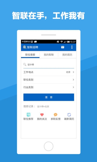想抢先一步发现好工作?让智联招聘来帮您!它是由智联招聘公司为Android手机用户量身打造的手机求职应用,供职位查询、简历投递、实时推荐、薪酬查询、求职指导等服务,是您的贴身求职助手。【智联招聘的特色】