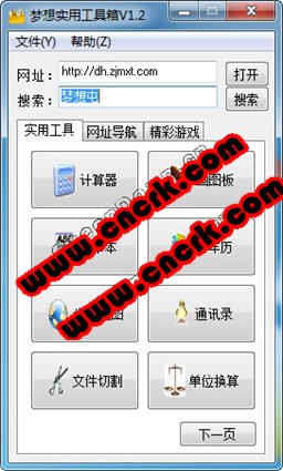 梦想实用工具箱包含计算器、画图板、记事本、万年历、世界地图、通讯录、文件切割等常用功能,还有网址导航模块,以及快速的网址访问、搜索功能。它可以随系统启动,为用户提供便捷的服务。