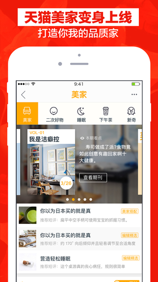 - 不同于传统网购应用的商品组合,流畅的浏览主题化的精品商品