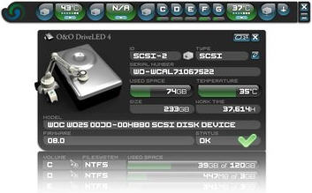 O&O DriveLED 4是一个硬盘监控软件,让您知道您的硬盘驱动器是将死或即将受到可能的撞击。 O&O DriveLED 4默默地工作在后台监视您的硬盘状态,O&O DriveLED可以将硬盘显示灯显示在桌面上,与机箱上的显示灯不同的是,DriveLED更可以显示出你本地虚拟硬盘的工作状态(比如:网络硬盘),软件上的绿/红色使你很清晰的分辨出硬盘的读/写状态。