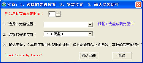 5、重新启动电脑,这个时候会提示进入哪个系统,不要选择WINXP了,选择BACK TRACK BY COLIN