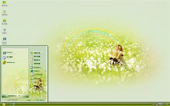 任何地方都是蒲公英的家,蒲公英只会跟随风的脚步四处为家,但是只要它在一个地方生根发芽之后,就会非常坚持,这款蒲公英的约定xp主题就特别美丽哦,电脑背景是一个女孩坐在蒲公英丛中,微笑的看着彩虹