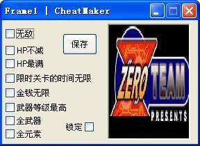 洛克人zero1修改器 功能: 无敌,HP不减,生命最满,限时关卡的时间无限,金钱无限,武器等级最高 全武器,全部元素,属性锁定 需要安装VC2008SP1