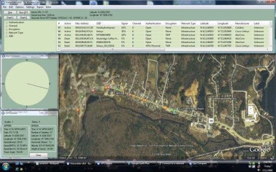 Vistumbler算是一款较新的开源扫描程序,Vistumbler能搜寻到你附近所有的无线网络,并且在上面附加信息,如:活跃、MAC 地址、SSID、 信号、频道、认证、加密和网络类型。它可显示基本的AP信息,包括精确的认证和加密方式,甚至可显示SSID和RSSI。Vistumbler还支持GPS设备,与当地不同的Wi-Fi网络连接,输出其他格式的数据