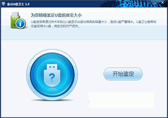 金山U盘卫士是一款功能非常强大的u盘检测修复金山软件,这款u盘卫士可以快速检测你的移动设备的真实大小,你只要把U盘对准USB接口,轻轻的插进去后,打开U盘卫士,就可快速检测你的移动设备是不是传说中的坑爹U盘,避免黑心商人带给你的各种不便。