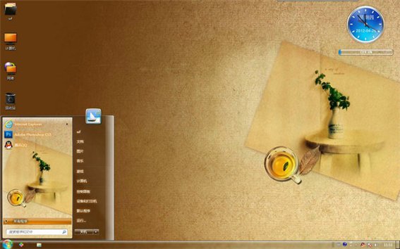 泛黄的旧照片在咖啡色的桌子上安静的躺着,旁边还有一杯清亮透明的茶水,但是整个桌面背景中最突出的就是那照片中的一抹绿色,不管在什么样的环境之下都是生意盎然的,喜欢这款一抹绿意win7主题的朋友们不要错过了哦~~
