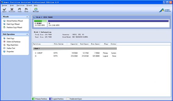 奥美分区助理专业版 Aomei Partition Assistant Professional Edition调整,移动,合并,拆分硬盘分区等等功能,面面俱到的硬盘分区软件,支持多系统,方便用户轻松分区.
