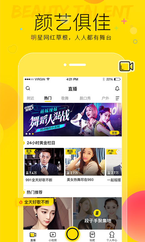【达人主播陪你玩】唱歌、跳舞、脱口秀、户外猎奇、游戏直播、交友互动、嘻哈、喊麦达人等应用尽有。还有阿哲、文er、球球等当红主播齐聚YY。不管何时何地,开心或忧伤,上YY,给你最温暖的陪伴!