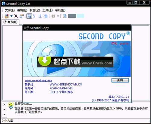 Second Copy这是一个文件备份软件,它会常驻在系统托盘,你可设定每隔几分钟(或是几小时、几天)自动执行一次备份工作,它会依你指定的时间间隔在后台作业,自动帮你将重要的文件或是整个文件夹备份到指定的目录。除了进行简单的复制,程序还可以将要备份的文件压缩到 Zip 文件,以及使源文件夹和目标文件夹保持同步。借助向导的帮助,你可以很快很容易地完成方案文件的设置和更改。