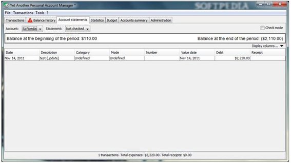 它会自动生成你的定期交易(工资,税收等)Yapbam建立您的帐户余额历史,如果它变为负数将会有相应的警告提示!