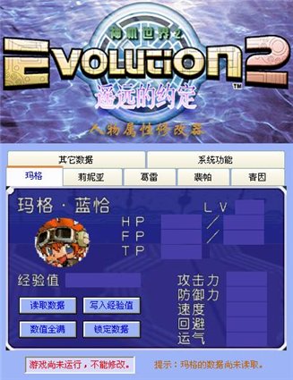 作弊器功能: 可修改玛格、莉妮亚、葛雷、裴帕、青因5位角色的所有人物属性,还可修改其它一些数据。界面很漂亮,故称为豪华版。 推荐去玩这个游戏,很好玩的 对应进程: Evo2_pc.exe
