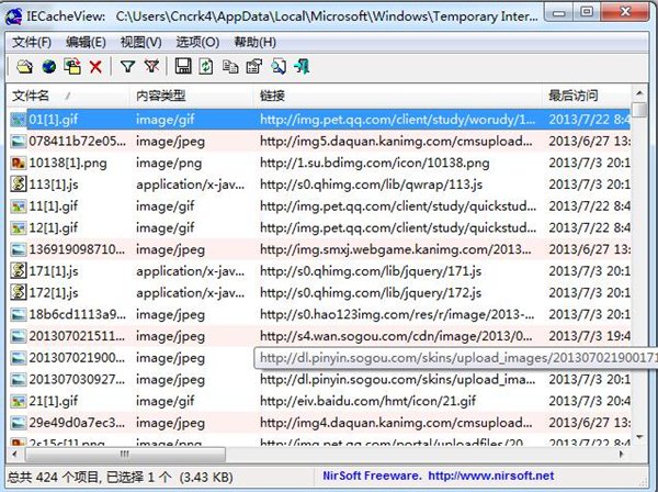IECacheViewer 是一个管理IE缓存的(从互联网上下载的临时页和文件) 程序,除了具有检查的功能外,它还提供了检索、复制和删除缓存记录的功能