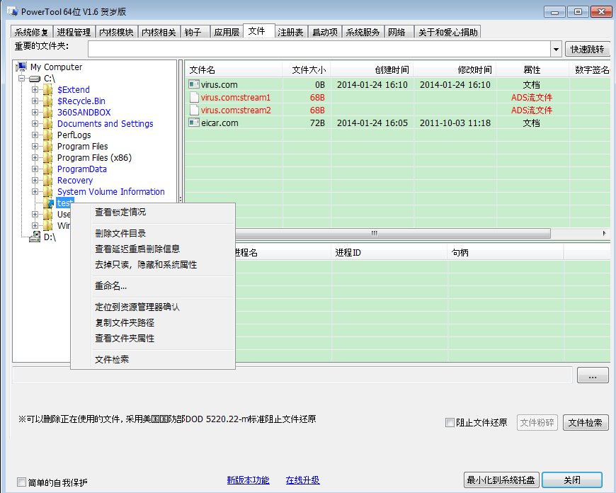 1. 加强了文件删除强度(可以强删被360,微点保护的文件)