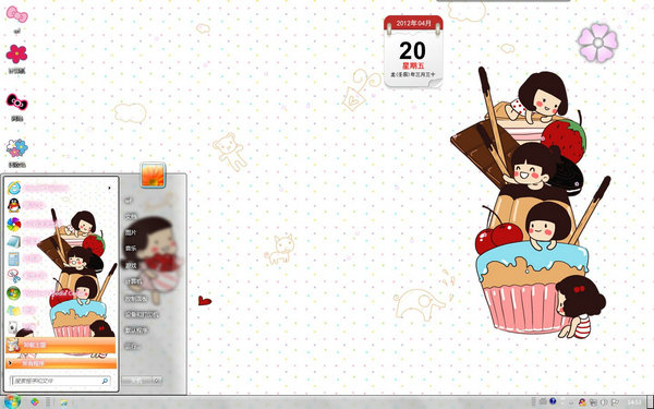 这款win7主题的桌面背景非常卡哇伊,几个小mm在美食里面忘情的笑着,多么天真快乐啊,一个人的快乐分享给别人就能够收获双倍的快乐,如果把悲伤告诉别人也可以将忧伤减半,所以要懂得与他人分享快乐才好哦!