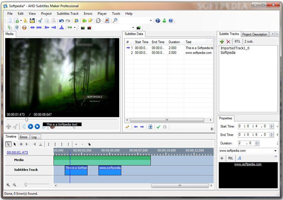 在这里你可以查看字幕轨道,数据(例如,开始时间,结束时间,持续时间,文字)和时间表(所以,你可以与视频同步字幕)。但你也可以预览影片,检查出错误,字幕属性,历史和日志文件。所以,你可以导入和导出字幕,使用“撤消”和“重做”按钮,换档时间,并填写空格,分裂所选字幕,改变媒体和重命名的项目。此外,您可以复制,压缩或翻译字幕(通过谷歌翻译),改变其颜色,位置和字体,添加标志,调节音量,选择错误的所有字幕,选择一个不同的界面语言,以及设置默认的字体和颜色。此外,您可以设置新的字幕的持续时间,使检测ID3标签时警告,选择您要使用的进口和出口的字幕格式,自动设定字幕格式文件的路径,在出口窗口,和更多。该方案采用中度到高量的系统资源,包括手绘的帮助文件。