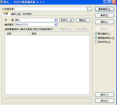 VC后台批量编译器 V0.32绿色免费版 VC后台批量编译器 如果你有一大堆VC2005/VC2008的解决方案或工程文件需要经常编译,那么你就有必要使用VC后台批量编译器