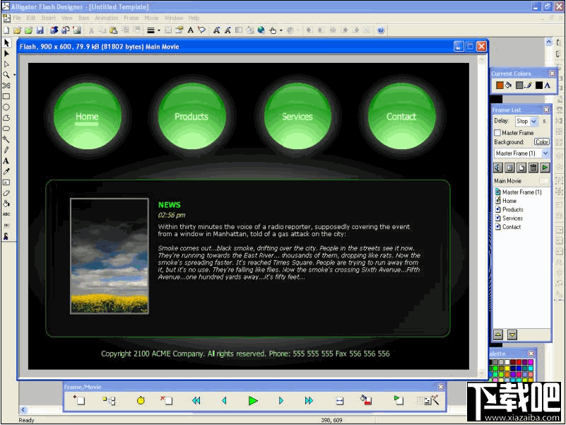 Selteco Flash Designer 可以为你的网页创建交互式的 flash 动画,可以用它创建网页的 Flash 按钮或是 Banner,网页菜单,或是综合的网页,还可以导入 GIF 动画文件,将其直接转换为 flash 动画.