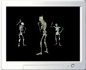他们的舞姿虽谈不上优美,但整体效果却非常之酷(尤其是夜深人静时,嘿嘿...)。程序中还提供了必要的设置选项,可以自定义背景音乐和舞蹈骷髅的数目等-----------
