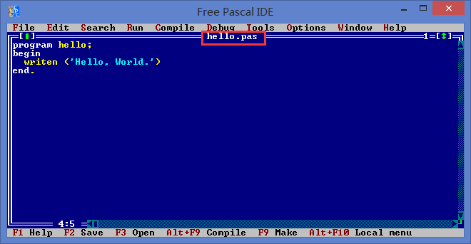 可以看到noname.pas变成了hello.pas