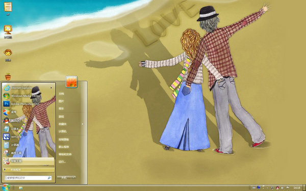 沙滩本来就是很浪漫的地方,如果你发现沙滩上有着大大的“love”字样的话,你是不是会觉得更加欢喜呢?尤其那些字是为你而写的时候,这款win7主题的电脑桌面够浪漫的了吧~