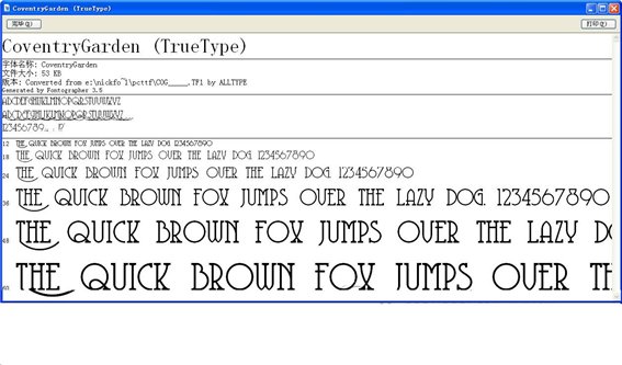 原始标准字体(CoventryGarden) TrueType英文字体的原始经典版本