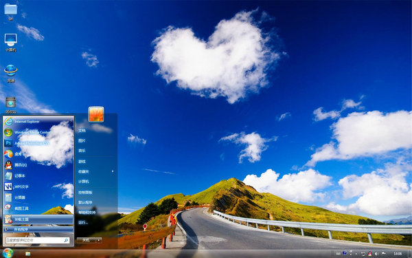 心型蓝天桌面背景 简体中文官方安装版 心型蓝天win7桌面背景