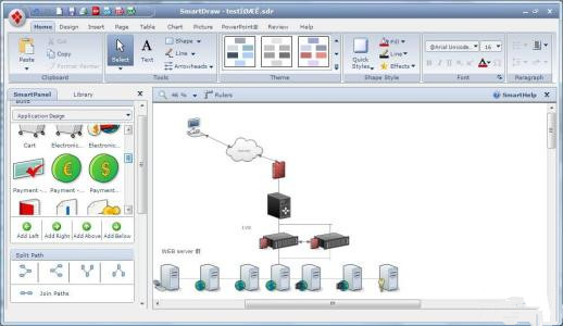 可以用它轻松设计、制作、管理、转换各种图表,剪辑画,实验公式,流程图等等。随带的图库里包含数万个示例、数万个符号和形状供你直接套用(当然,你还可以去该公司的网站下载更多的符号和外形。总量达数百兆之巨,充分满足你制作各类图表的需要。)。其独特之连结器具有随机移动功能,不易断线。内含多种模型,可直接套用或修改。用SmartDraw任何人只需花费几分钟,而非几小时来创建精美商业图形。SmartDraw 是采用完全不同方法的绘图软件,这样就可以快速绘图。SmartDraw侧重于你插图的最终结果,而不是绘制的过程。