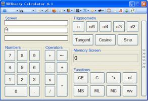 中学数学计算器(VBTheory Calculator) 简单的计算器 可让您执行数学计算。你可以使用便携式执行加法,减法,乘法,部门,找出平方根或进入三角的VBTheory计算器。