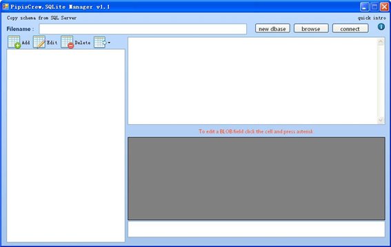 你可以打开一个数据库或创建一个新的。打开所需的数据库后,你将能够编辑,即使他们的类型是BLOB。