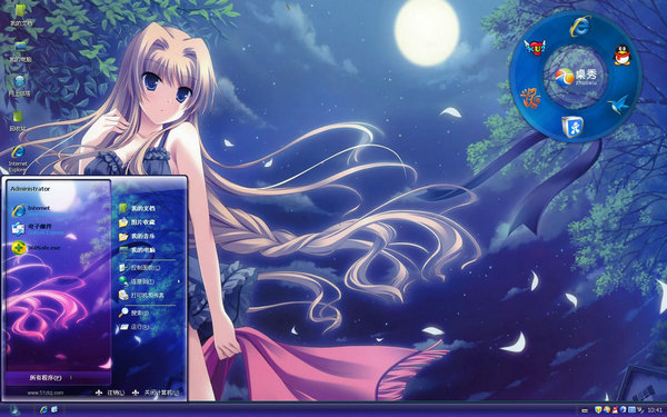 这款xp电脑主题的桌面背景是一个少女在月夜下穿着超短裙,飘散着长发,还有皎洁的月光和飞舞的花瓣,真是一场美景呢,喜欢动漫桌面主题的朋友们不要错过了哦~