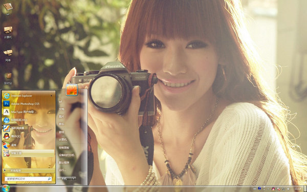 这款桌面主题的电脑桌面是一个穿着白色针织衫的美女拿着相机拍摄的画面,她在扑捉美景的同时,她也成为了我们眼中的美景,这正如一首诗说道“你站在桥上看风景,看风景人在楼上看你。”